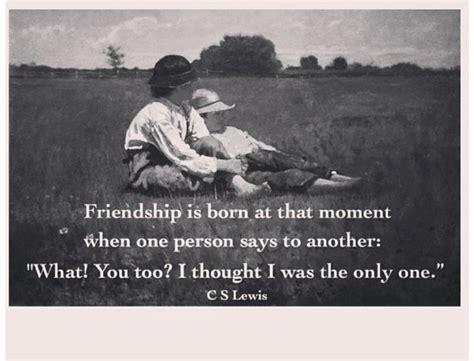 Friendship is unnecessary, like philosophy, like art... It has no survival value; rather it is one of those things that give value to survival. C. S. Lewis. Friendship, Best Friend, Relationship. Friendship is born at that moment when one man says to another: "What!12/04/2020 · 3. C S Lewis Quote “Friendship is the instrument by which; 4. C S Lewis Quote “Friendship is the instrument by which; 5. Lewis on Friendship Pondering Principles; 6. C S Lewis Friendship Quote Typed on Typewriter 4×6 White; 7. C S Lewis Friendship Quotes; 8. C S Lewis Quotes; 9. C S Lewis Quote About truth share friendship friends; 10.The friendship is not a reward for our discriminating and good taste in finding one another out. It is the instrument by which God reveals to each of us the beauties of others.”. ― C.S. Lewis, The Four Loves. tags: friendship , inspirational.C.S. Lewis Quotes on Friendship. (5 Quotes) The mark of Friendship is not that help will be given when the pinch comes (of course it will) but that, having been given, it makes no difference at all. Friendship is...the sort of love one can imagine between angels.Best CS Lewis Quotes “Friendship is born at that moment when one person says to another: “What! You too? I thought I was the only one.” , CS Lewis quotes friendship “What draws people to be friends is that they see the same truth. They share it.”13/05/2016 · Lewis argues that, in Friendship, we see more of a person when more of us see him or her: Hence true Friendship is the least jealous of loves. Two friends delight to be joined by a third, and three by a fourth, if only the newcomer is qualified to become a real friend….30/04/2014 · ― C.S. Lewis, Till We Have Faces. C.S. Lewis Quotes on Love and Friendship “Friendship is unnecessary, like philosophy, like art…. It has no survival value; rather it is one of those things which give value to survival.” ― C.S. Lewis, The Four Loves “Everyone thinks forgiveness is a lovely idea until he has something to forgive.”12/06/2019 · In this way, a true friendship is self-forgetting. As Lewis says, “Friendship is utterly free from Affection’s need to be needed . . . The mark of perfect Friendship is not that help will be given when the pinch comes (of course it will) but that, having been given, it makes no difference at all.” 3. Friendship is not jealous.