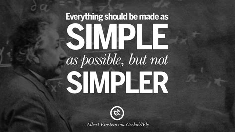 13/05/2011 · “It can scarcely be denied that the supreme goal of all theory is to make the irreducible basic elements as simple and as few as possible without having to surrender the adequate representation of a single datum of experience.” as simple as possible but no simpler resulted in the maxim:Let's make beautiful custom quotes pictures. Step 1. Write Something. Main Text. TIPS = Adding an asterisk ( * ) to a specific word will make it bold and prominent. eg = * Make every m * inutes count will make the word " make " and " minutes " highlighted! Try it.Albert Einstein. Intellectuals solve problems, geniuses prevent them. Albert Einstein. Nationalism is an infantile disease. It is the measles of mankind. Albert Einstein. Only a life lived for others is a life worthwhile. Albert Einstein.18/11/2021 · Top 30 most inspiring Albert Einstein quotes Few are those who see with their own eyes and feel with their own hearts. Imagination is more important than knowledge.“Make things as simple as possible, but no simpler.” ― Albert Einstein, Selected WritingsAnd even in our sleep pain that cannot forget falls drop by drop upon the heart, and in our own despair, against our will, comes wisdom to us by the awful grace of God. Aeschylus. Three things cannot be long hidden: the sun, the moon, and the truth. Buddha.05/03/2022 · “The definition of genius is taking the complex and making it simple.” ― Albert Einstein