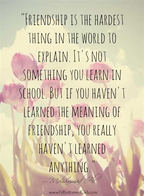 “I think if I've learned anything about friendship, it's to hang in, stay connected, fight for them, and let them fight for you. Don't walk away, don't be distracted, don't be too busy or tired, don't take them for granted. Friends are part of the glue that holds …19/08/2020 · These adorable friendship quotes are sure to get a smile out of your friend. “A real friend is one who walks in when the rest of the world walks out.”. — Walter Winchell. “A friend is someone who understands your past, believes in your future, and accepts you just the way you are.”. — Unknown.22/12/2021 · Cute friendship quotes. Sometimes being a little cheesy isn’t the worst thing in the world. The following friendship quotes are simple, sweet, and there is no single occasion that they are best suited for. Make your friends’ day a little bit brighter by sending them one of these cute friendship quotes. 1.12/06/2021 · So whether you want to honor your friendships or just remember why you love your friends dearly, we hope you enjoy these amazing friendship quotes. So share them with your best friends and make some new ones too. Friendship Quotes. Friendship is a word, the very sight of which in print makes heart warm. Augustine Birrell. Friendship is always a sweet responsibility, …19/01/2018 · "Friendship is the only cement that will ever hold the world together." Woodrow Wilson "True friendship comes when the silence between …29/06/2020 · A true friend is forever a friend. GEORGE MACDONALD. Friendship is the hardest thing in the world to explain. It’s not something you learn in school. But if you haven’t learned the meaning of friendship, you really haven’t learned anything. MUHAMMAD ALI ( more Muhammad Ali quotes)14/05/2015 · However rare true love may be, it is less so than true friendship. - Albert Einstein. “. Friends are those rare people who ask how we are and then wait to hear the answer. - Ed Cunningham. “. One of the most beautiful qualities of true friendship is to understand and to be understood. - Seneca. “.Best Friendship Quotes Friends are said to be the family you select, ...